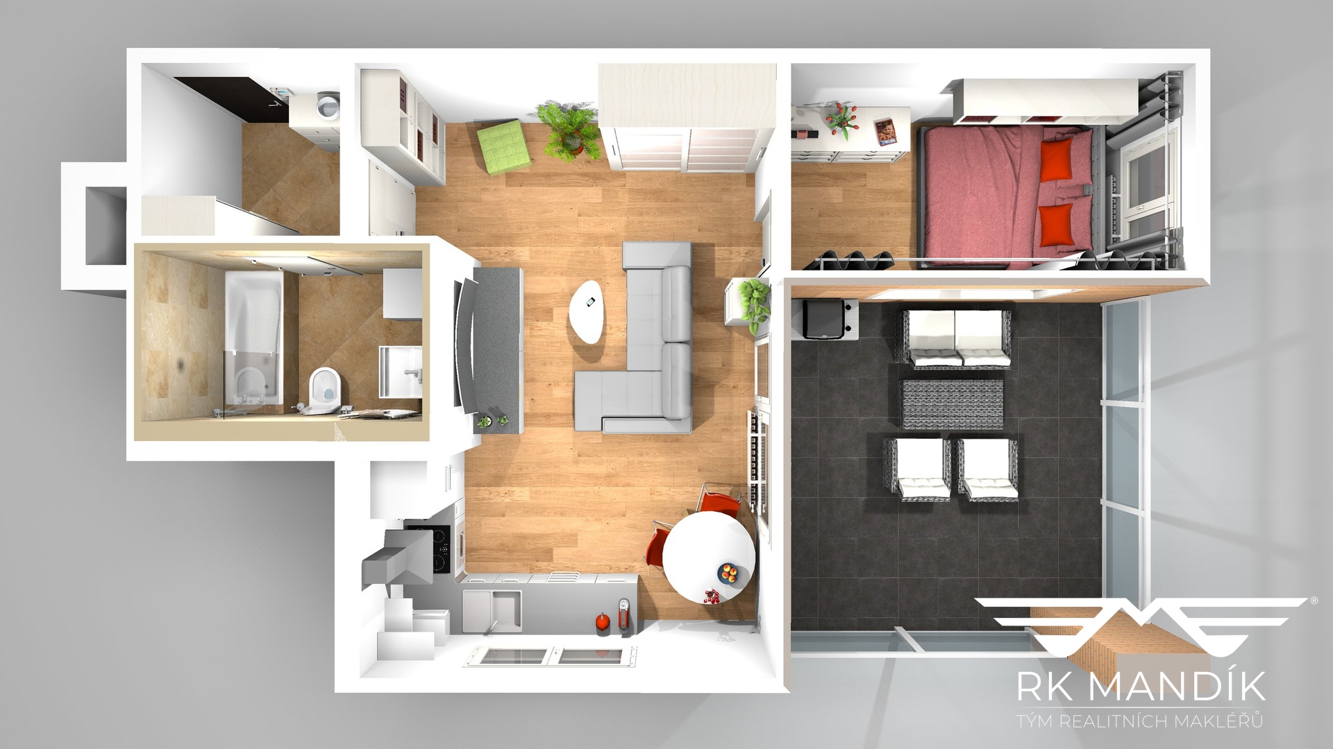 Byt se nachází v 6. nadzemním podlaží moderní rezidenční budovy a má podlahovou plochu 47,5 m2. K jednotce dále náleží prostorný balkon o výměře 10,2 m2, komora (2,7 m2) a také garážové stání v 1. NP domu. Byt byl dokončen v roce 2023 a je ve výborném, téměř novém stavu. Součástí vybavení je kuchyňská linka s vestavnými spotřebiči – lednice s mrazákem, sklokeramická varná deska, digestoř, myčka (45 cm), trouba a pračka. Ve všech místnostech jsou instalována svítidla a žaluzie na oknech. V koupelně se nachází vana se zástěnou, umyvadlo s baterií, závěsné WC a otopný žebřík. Jinak se byt pronajímá nezařízený, což umožňuje novému nájemci zařízení dle vlastních představ.
