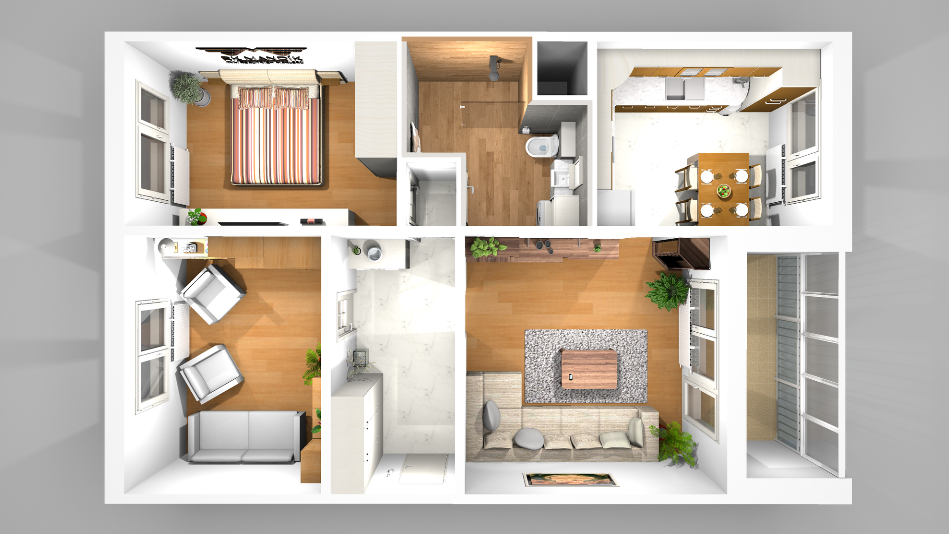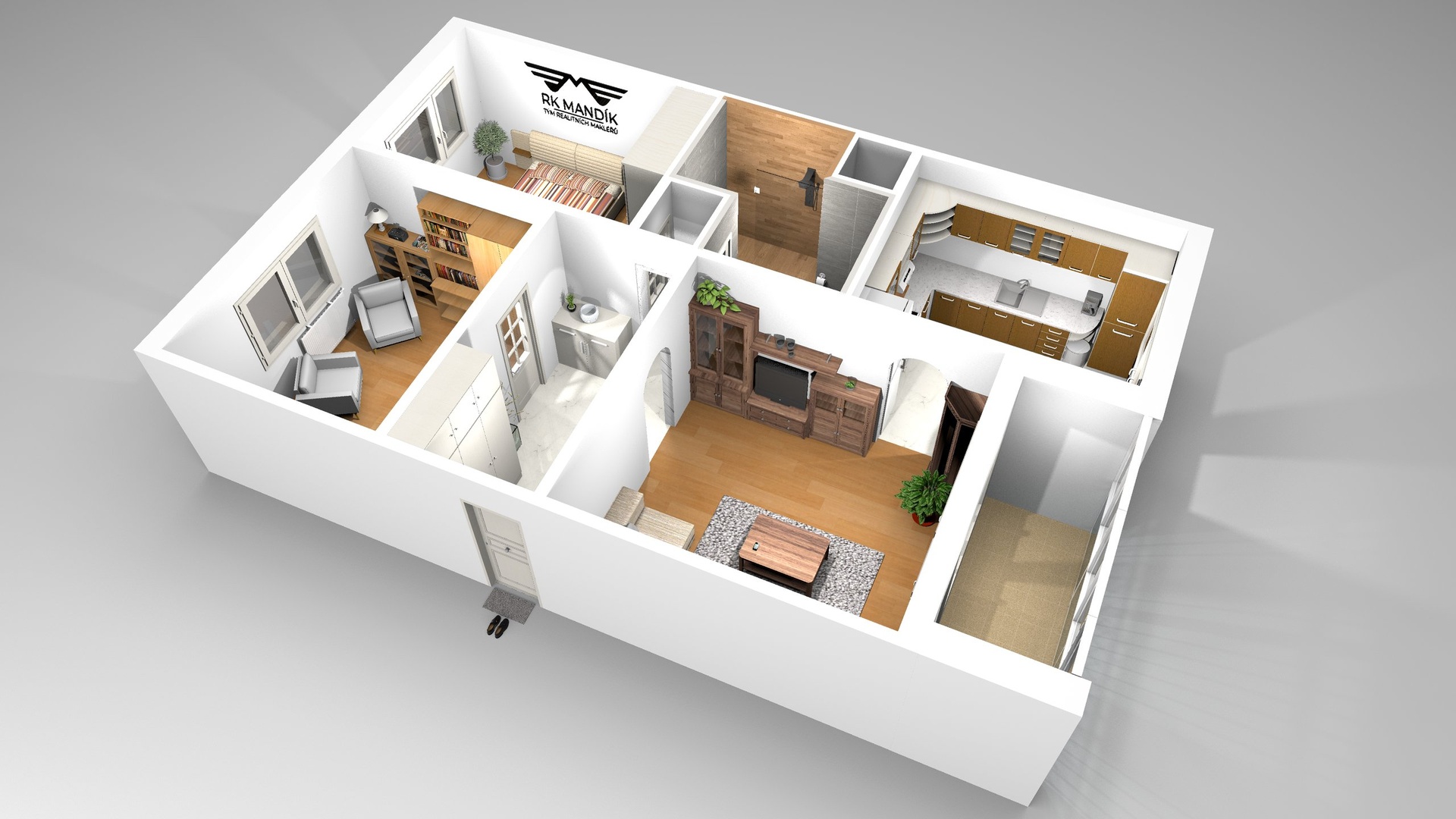 Dispozičně je byt řešen obývacím pokojem s lodžií, kuchyní s orientací na jižní stranu a překrásným výhledem.