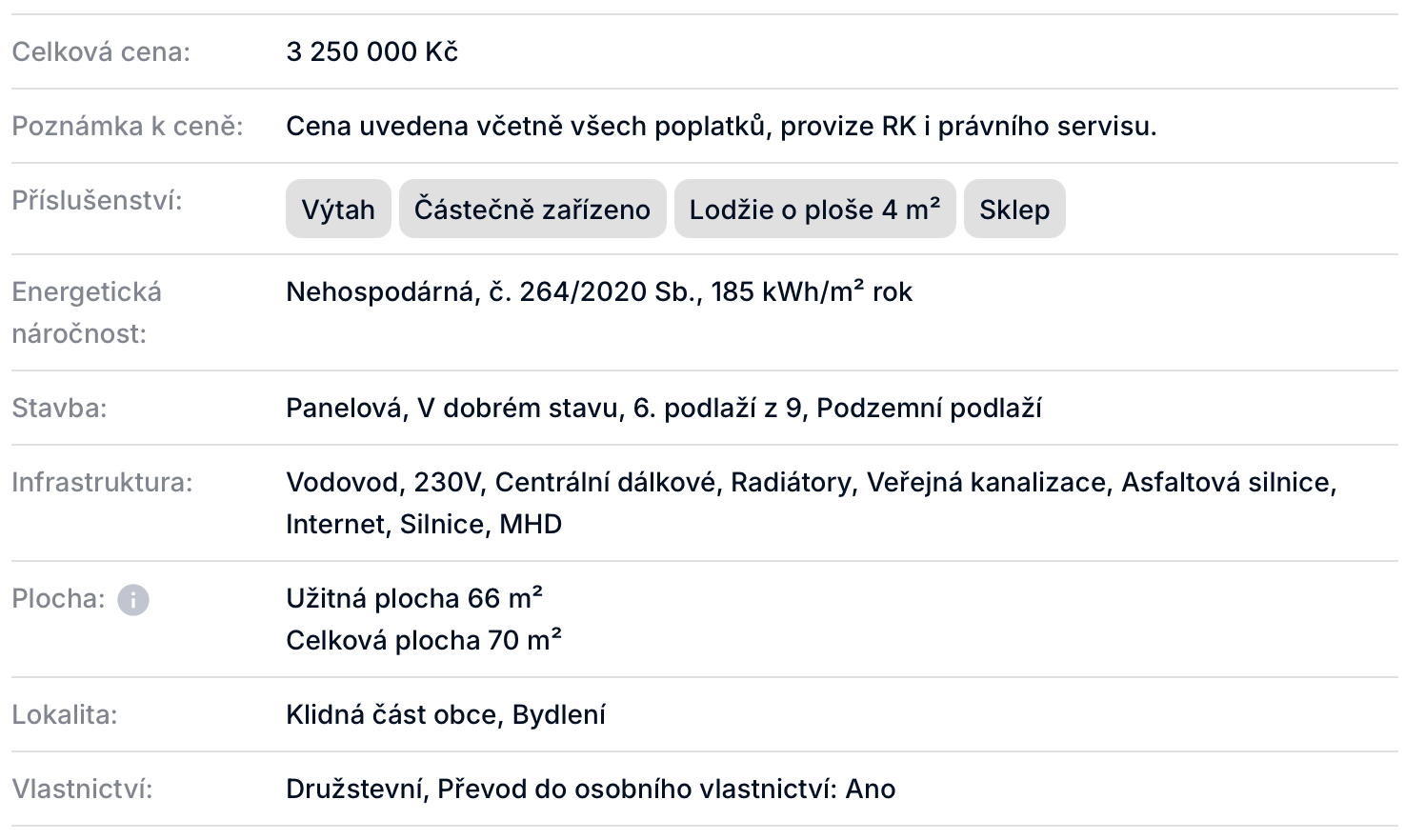 Byt nedávno prošel částečnou rekonstrukcí (zděné jádro, podlahové krytiny).