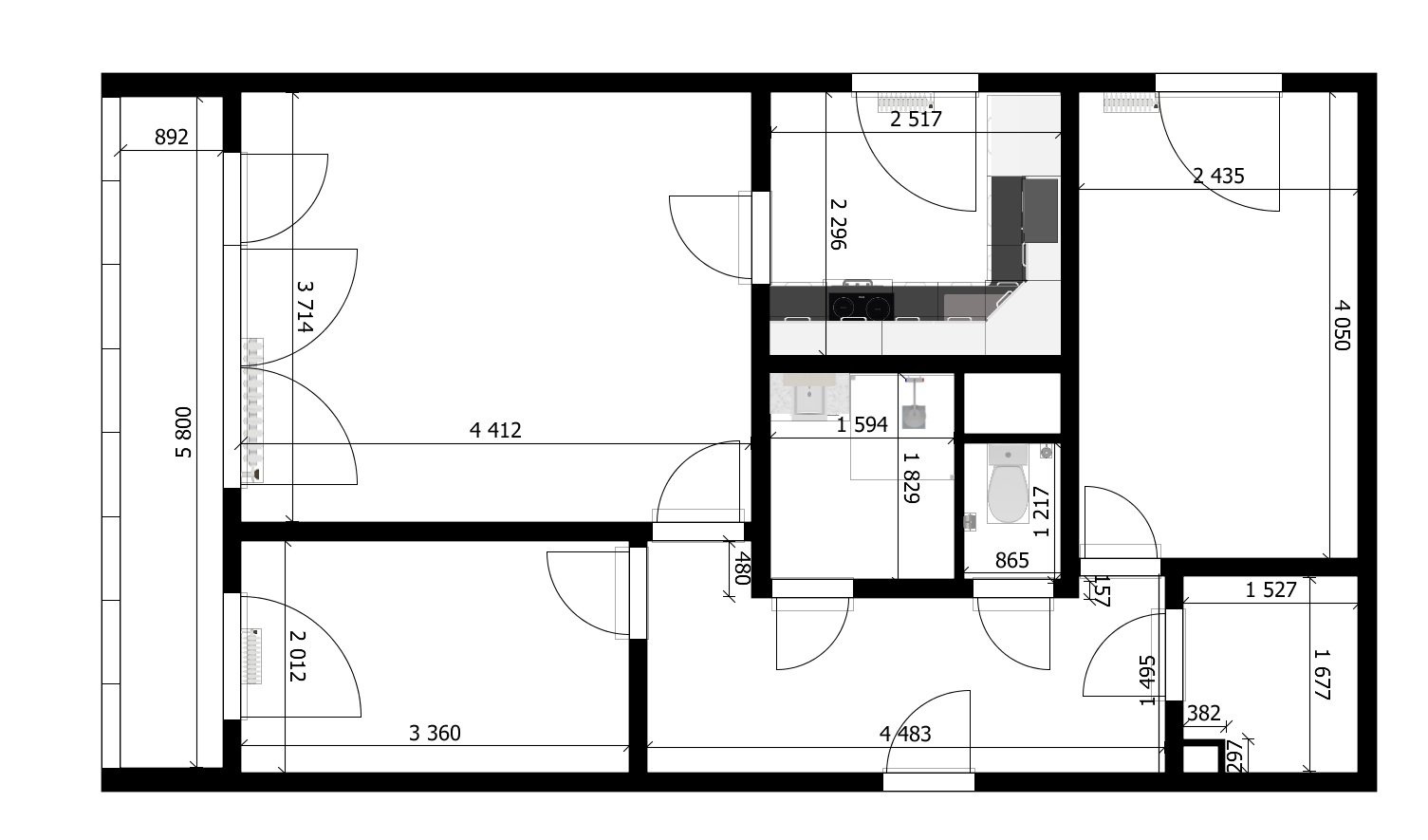 Nemovitost je po kompletní rekonstrukci a je připravena k okamžitému nastěhování. Dispozičně se byt skládá z obývacího pokoje se vstupem na zasklenou lodžii, samostatné ložnice, dalšího samostatného pokoje, kuchyně, koupelny, toalety a praktické komory s možností využití jako šatny. Součástí vybavení je nová kuchyňská linka značky IKEA osazená vestavnými spotřebiči, mezi které patří indukční varná deska, elektrická trouba, mikrovlnná trouba, kombinovaná lednice s mrazákem a digestoř s odvodem. Nechybí ani praktická pračka, která je vzhledem k velikosti koupelny umístěna v kuchyni.