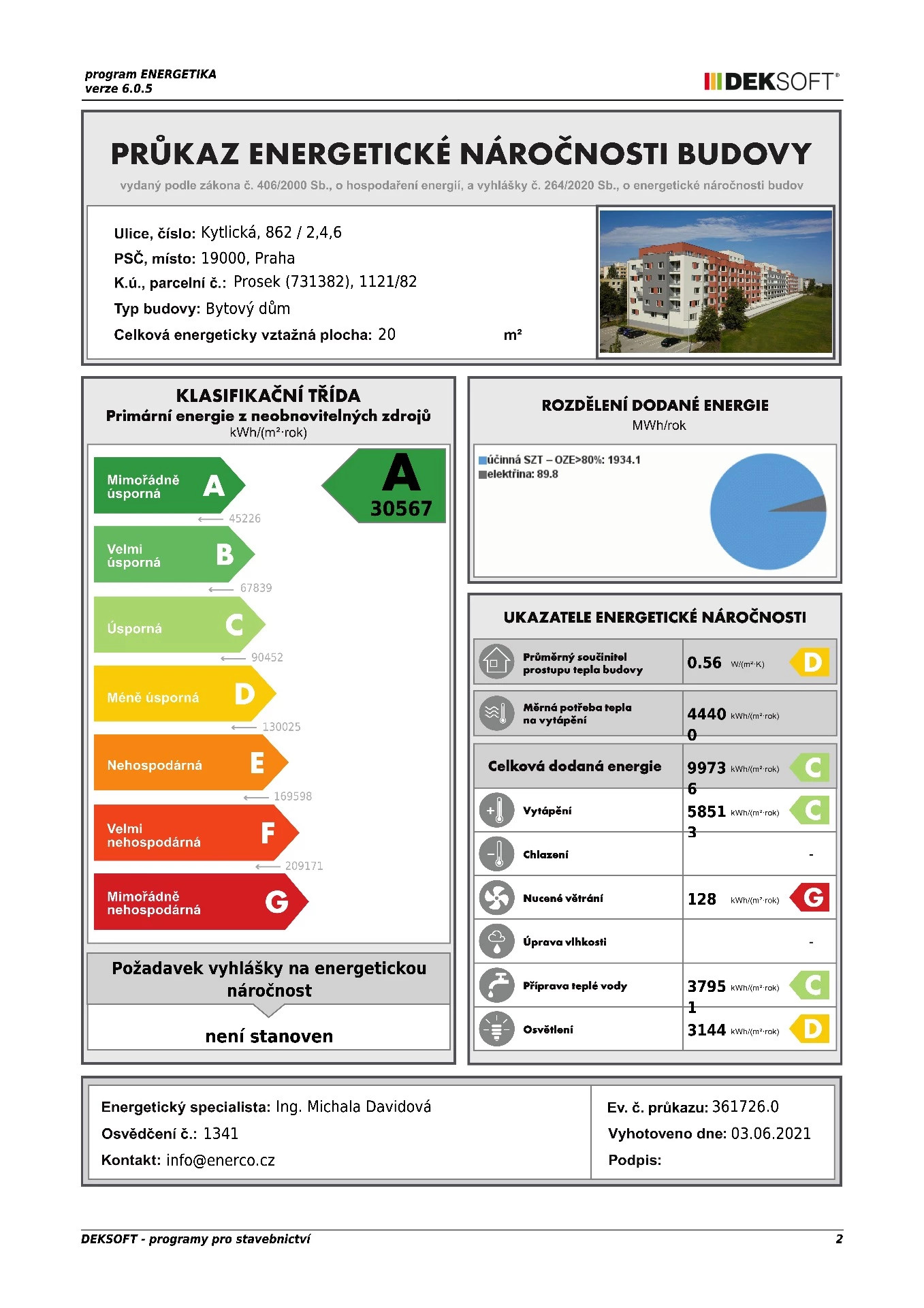 - Třída energetické náročnosti: A - náročnost:Mimořádně úsporná, č. 264/2020 Sb., 30 657 kWh/m² rok
