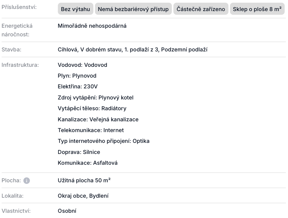 Vytápění i ohřev vody zajišťuje vlastní plynový kotel, díky kterému máte plnou kontrolu nad spotřebou a provozními náklady. K bytu je zaveden také optický internet.
