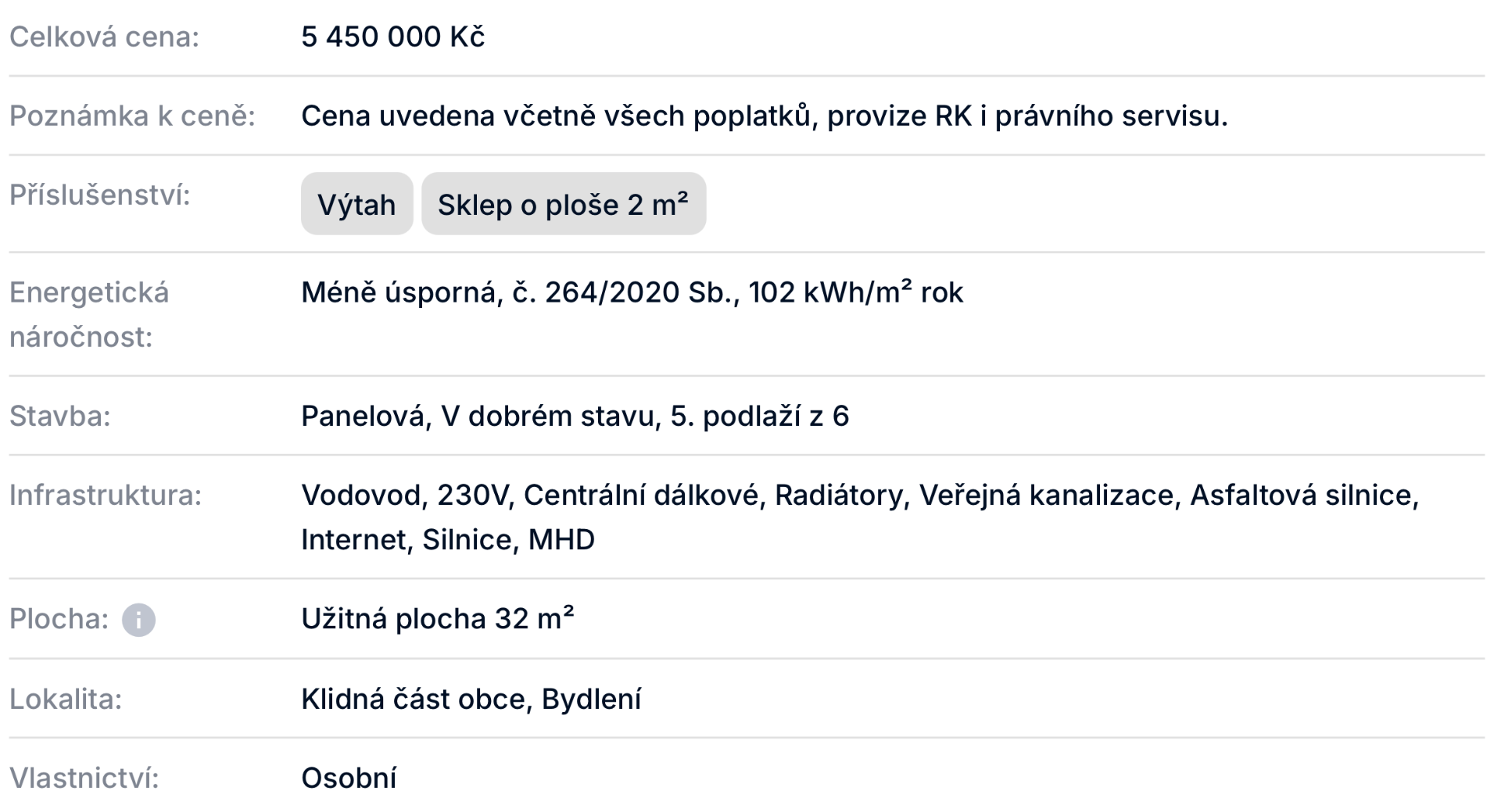5 450 000 Kč včetně všech poplatků, provize RK i právního servisu.